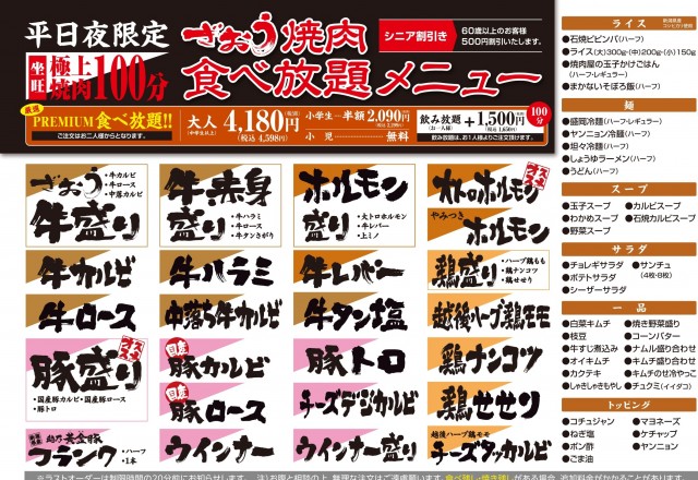 極上焼肉、平日夜限定の食べ放題